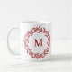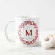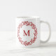 Mug Monogramme moderne Feuille rouge initiale et couro