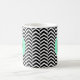 Motif de chevron noir et blanc et vert menthe de mer avec monogramme. Le design se compose d'un chevron noir et blanc motif et d'un cercle en mousse de mer au milieu pour mettre votre initiale.