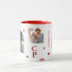 Monogramme Nom 3 Photo Collage Moderne tendance Mug de café comprend un collage photo de trois de vos photos préférées avec votre nom personnalisé et monogramme en élégant script rouge. Personnalisez en modifiant le texte dans les zones de texte fournies. Parfait pour l'anniversaire, Noël, Fête des Mères, soeur, meilleurs amis et plus encore. CONSEIL PHOTO : centrez vos photos avant de les télécharger sur Zazzle. Conçu par ©Evco Studio www.zazzle.com/store/evcostudio