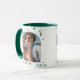 Monogramme Nom Photo Tendance Simple Moderne Mug de café dispose d'une de vos photos préférées avec votre nom personnalisé et monogramme en élégant script vert. Personnalisez en modifiant le texte dans les zones de texte fournies. Parfait pour l'anniversaire, Noël, Fête des Mères, Fête des pères, soeur, cousins, meilleurs amis et plus encore. CONSEIL PHOTO : centre votre photo avant de la télécharger sur Zazzle. Conçu par ©Evco Studio www.zazzle.com/store/evcostudio