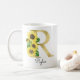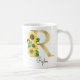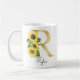 Marquage en or monogramme avec mug initiale tournesol, cadeau de Noël ou d'anniversaire idéal pour une fille, maman, tante ou sœur. Personnalisé avec le monogramme de la lettre R et un nom. D'autres lettres sont disponibles dans ma boutique.