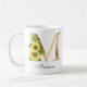 Marquage en or monogrammé avec mug initial tournesol, cadeau de Noël ou d'anniversaire idéal pour une fille, une mère, une tante ou une sœur. Personnalisé avec la lettre monogrammée M et un nom. D'autres lettres sont disponibles dans ma boutique.