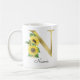 Marquage en or monogramme avec mug initial tournesol, cadeau de Noël ou d'anniversaire idéal pour une fille, une mère, une tante ou une sœur. Personnalisé avec le monogramme de la lettre N et un nom. Autres lettres disponibles dans ma boutique.