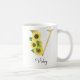 Marquage en monogramme or avec mug initiale tournesol, cadeau idéal pour Noël ou anniversaire pour une fille, maman, tante ou soeur. Personnalisé avec le monogramme de la lettre V et un nom. Autres lettres disponibles dans ma boutique.