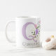 Doux design floral de couleur pastel avec monogramme et nom du destinataire. L'initiale est la lettre Q. Tasse Queenie, un cadeau pour Queenie.