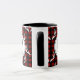 Tasse de vacances rustique avec cerf blanc un motif de bois. L'arrière - plan est un buffet rouge et noir qui est parfait pour un Noël rustique ! Faites-vous plaisir avec votre chocolat chaud ou votre café préféré cette saison de vacances dans un style rustique et audacieux de nature sauvage!