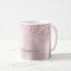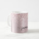 Mug Élégant Féminin Rose Poudré et Doré Rose Pailleté Ombré Métallisé Monogramme Nom Script Personnalisé Mug Café Personnalisé. Ces designs présentent votre prénom dans un joli style de lettrage manuscrit avec des fioritures, une signature de calligraphie ou une typographie sur une fausse feuille métallique rose poudré et doré rose avec une bordure pailletée glamour. Ceux-ci sont faciles à personnaliser. Cadeau de crémaillère élégant et féminin, également pour un anniversaire, la fête des mères, un mariage, une fête d'anniversaire pour les 16 ans, une douche de mariée, une baby shower, pour une fête de fin d'études et c'est pour la fille qui aime les choses uniques et élégantes qui brillent.