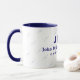 Mug monogramme sur muqueuse blanche et bleue avec nom