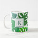 Tasse à café avec monogrammes personnalisés sur un motif botanique tropical feuille monsyer vert.