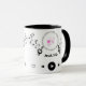 Cette tasse unique met en valeur votre amour pour la musique avec son design de notes musicales et sa poignée noire.