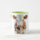 Une tasse blanche avec un imprimé réaliste du visage et des marques d’une vache, offrant un design unique et attrayant pour le plaisir des boissons