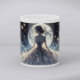 This enchanting visual art captures a serene fairy princess standing beneath a luminous full moon, surrounded by drifting golden fireflies and soft midnight clouds. Her flowing celestial gown cascades outward in intricate floral lace patterns, blending deep navy, silver-blue, and soft ivory tones into a dreamy, ethereal palette. The delicate glow of starlight and fluttering butterflies creates a whimsical, storybook atmosphere that feels both romantic and otherworldly. With its cottagecore-meets-fantasy aesthetic, this design evokes quiet magic, feminine strength, and moonlit wonder. The composition balances dramatic night sky contrast with soft, glowing highlights, giving it a boho fairytale elegance that feels timeless yet on-trend. Perfect for lovers of celestial art, dreamy fantasy, and graceful feminine silhouettes, this artwork invites you into a peaceful, star-kissed realm of imagination and light. AI generated artwork.