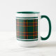 Tasse à café avec tartan de clan moran, un classique motif plaid vert et noir de forêt, aux accents d'or clair, de rouge et de bleu roi. Cinq styles disponibles en deux tailles.