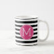 Mug Motif à rayures noir et blanc Monogramme rose chau