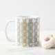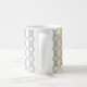 Un élégant motif de formes géométriques argentées et dorées, reliées par une série de serpentins linéaires en dentelle.