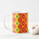 Un beau design rétro abstrait avec des rayures de diamant ondulées en rouge, orange, jaune et vert sur un arrière - plan blanc, rappelant la décoration de la maison des années soixante-dix, qui éclairera votre maison avec des couleurs vives et vives.