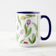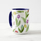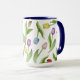 La conception du produit est composée d'un motif de fleurs de tulipe colorées en violet, rouge, rose, bleu et jaune. Cette illustration botanique fait une tasse à café moderne et unique - idée cadeau pour l’anniversaire, Pâques, Fête des Mères, mariage et plus encore!
