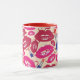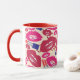 Un amusement et une conception flirty qui comporte des tubes de rouge à lèvres, des lèvres roses, et des lèvres rouges sur un arrière - plan de coeur.