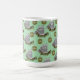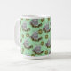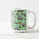 Chat gris aux yeux verts assis à côté de la couronne verte, des cônes de pin et de la tasse de baies rouges. Cute motif de chat gris avec des ornements verts tasse de café. Chat parfait motif de conception tasse pour Noël en Décembre. Super motif de chat pour les amoureux de les chats et les propriétaires de chat. Cette tasse design motif de chat gris est idéale pour cette saison de vacances.