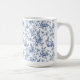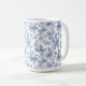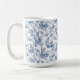 Charmant tasse à café à thème Printemps dispose d'une Chinoiserie bleue et blanche Toile de Jouy motif avec lapins, papillons et fleurs de printemps.