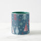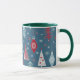 Motif de Noël d'hiver. Rouge stylisé, arbres de Noël verts, boules de Noël sur un arrière - plan bleu.