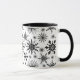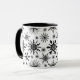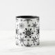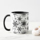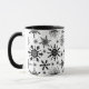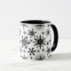 C'est une belle tasse avec un motif de flocon de neige en noir sur un arrière - plan blanc. Savourez vos boissons chaudes dans cette tasse festive.
