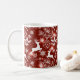 Motif de Noël rouge et blanc avec rennes, flocons de neige, branches d'épinette.