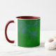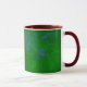 Illustration vintage d'une branche de pin avec pinecones sur un arrière - plan de verts et bleu sur une tasse de café que vous pouvez customiser.