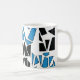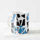 Tasse à café à motif de verre coloré noir et bleu conçue à l'origine par Nisha Prabhu. Une tasse à café à motif de verre coloré noir et bleu présente un design artistique et accrocheur inspiré de l'art du vitrail. La tasse met en valeur des motifs géométriques complexes dans des tons noirs profonds et des nuances de bleu vives, ressemblant à des panneaux de verre coloré colorés. Parfaite pour ajouter une touche d'élégance et de créativité à votre routine quotidienne de café, cette tasse combine l'artisanat artistique avec une beauté fonctionnelle, rendant chaque gorgée une expérience colorée.