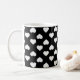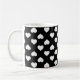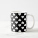 Cette tasse présente un motif répétitif de coeurs blancs sur un arrière - plan noir.