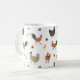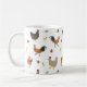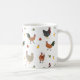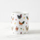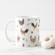 Motif avec des illustrations de poulets et poussins avec chapeaux santa, écharpes, ornements de Noël, saints, spriges à feuillage persistant et sucre de canne