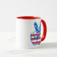 Ce design est composé d'une main qui fait le signe de paix recouvert du dessin American Flag.
