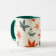 Cette illustration présente un charmant motif minimaliste de feuilles d'automne aux tons vifs de rouge, d'orange et de vert muet. Les feuille sont répartis dans un arrière - plan beige doux, avec de délicates taches d'encre noire qui apportent une touche de texture et d'esprit artistique. Le design saisit l'essence de l'automne, évoquant un sentiment de chaleur et de beauté naturelle.