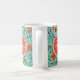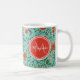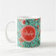 Une tasse couleur aquamarine avec une jolie floraison rouge-orange et pêche aux feuilles marine et vert. Personnalisez en ajoutant votre nom et votre monogramme à l'insigne d'octogone rouge tomate cerise. Cela fait partie de la collection Aquamarine Floral Cherry Tomato Red Monogram.