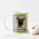 Motif géométrique à points gris et jaunes modernes présente des animaux de compagnie bien-aimés. Café, thé ou coca avec votre Carlin précieux ou n'importe lequel de vos animaux égayera la journée. La photo de votre chien ou chat et leur nom le rend si spécial et peut être un cadeau parfait pour quelqu'un avec un nouveau Carlin ou d'autres animaux de compagnie.