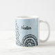 Profitez de votre boisson préférée avec ce Mehndi Motif Mug avec un design au henné indien complexe sur un arrière - plan bleu en détresse. Ajoutez du texte personnalisé, tel que votre nom, à ce design ethnique pour lui donner une touche personnelle.