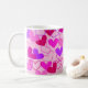 © Christina Katson - Mon art abstrait original, art vectoriel et design. Cette mignonne tasse à café a un design abstrait coloré de coeurs en chute avec un motif décoratif lumineux de coeurs rose, fuchsia, rouge et violet. Cette tasse à café girly égayerait la journée des amateurs de café. Ce serait un grand cadeau pour la Saint-Valentin ! Surtout pour les filles et les ados.