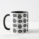 Motif en noir et blanc Tiki avec fleurs et motif de poisson sur tasse de café funky.