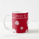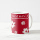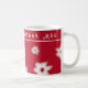 Une tasse de Noël personnalisée, avec des poinsettias blanches et un arrière - plan rouge aux Halleberry. Il est à la fois amusant et élégant, et fait un cadeau pratique!