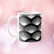 Aimez-vous les motifs d'inspiration art déco ? Cette tasse a un motif art déco aux formes de ventilateur blanc sur un arrière - plan noir.