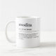 Cette tasse en céramique minimaliste présente une définition de style dictionnaire du terme japonais "Mudita" en typographie noir et blanc et un design propre et simple. Le mot japonais mudita n'a pas d'équivalent dans la langue anglaise et fait référence à la joie sincère et sincère vécue dans le plaisir du succès, du bonheur, ou du bien-être des autres. Cette tasse à café de définition de mot mudita fait un grand cadeau pour les amateurs de yoga, les chercheurs spirituels les amis de la vie et de la méditation, ainsi que tous les amoureux japonais ou les amateurs de dictionnaire de ce genre à étendre leur vocabulaire.