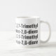 Cette tasse scientifique a le nom UICPA pour la caféine, 1,3,7-triméthylpurine-2,6-dione, répétée partout et autour. Plus s'il vous plaît !