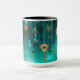 Or, clés antiques avec engrenages et cadrans accrochés sur chaînes dorées sur arrière - plan vert lumineux.