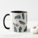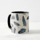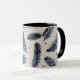 Une tasse à café au design de fougères rouge et bleu denim