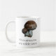 Photo de champignons crémini (petits champignons portabella) avec les mots "Tous les champignons sont comestibles une fois" imprimé ci-dessous. Conception des deux côtés de la tasse.