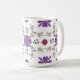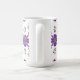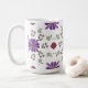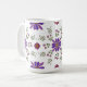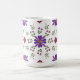 Sirotez votre brasserie préférée dans un style élégant avec cette tasse florale vibrante. Parfait pour égayer votre routine matinale ! Ce motif floral d'art folklorique fantaisiste enroule autour de la tasse et présente des fleurs violettes et rouges avec des accents d'or et des feuilles verts frais contre l'arrière - plan blanc de la tasse.