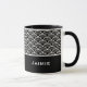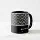La tasse de café en céramique est présentée avec une impression d'art noir et blanc. Customisez cet article et changez le nom de l'exemple en votre nom.