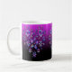 De belles petites fleurs de différentes tailles, formes et couleurs qui varient dans les tons bleu et violet sur un arrière - plan dégradé violet et noir.