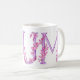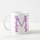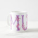 Orchidées typographiques autour des lettres MUM mug art. Joli blanc orchidée rose aquarelle art mauve lettre mug. Idéal pour donner à maman le jour de la mère, un anniversaire spécial ou une autre occasion spéciale. © Original watercolor art and design par Sarah Trett. www.sarahtrett.com pour www.mylittleeden.com