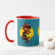 Le dragon noir aux détails rouges semble une silhouette effrayante contre une lune dorée.